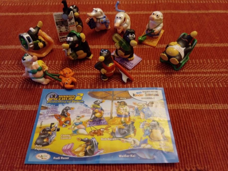 10 + 1 (11) krteka na odmoru odlično očuvanih sa kutijicom i u mekim jastučićima za dugotrajno besprijekorno čuvanje. Sve pojedinačne sličice posjedujem, za zahtjevnije kolekcionare set, kao i dodatnog krteka - nije iz seta, ali je iz serije (Varianta)
