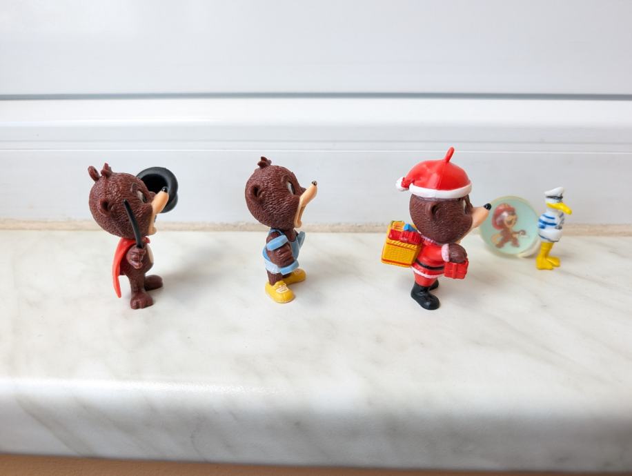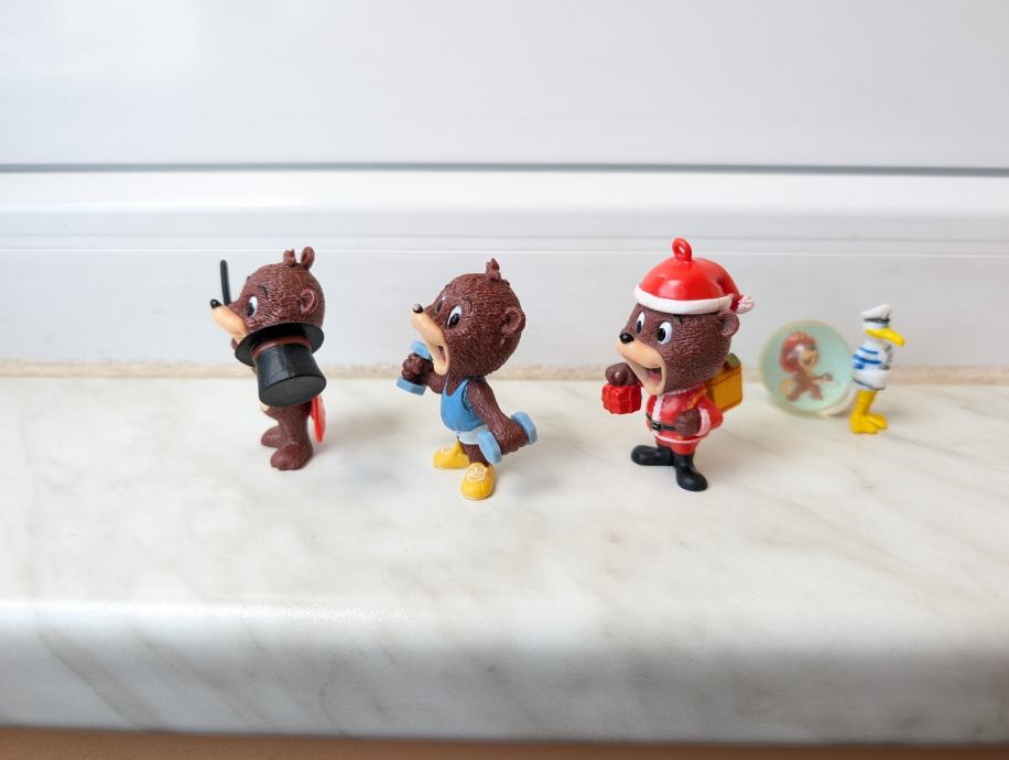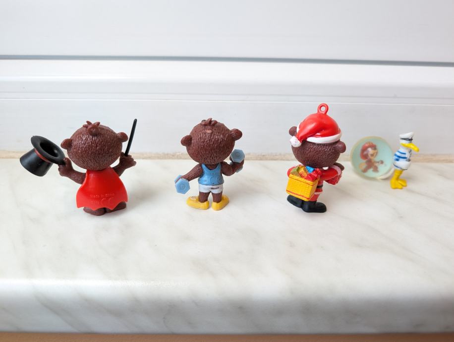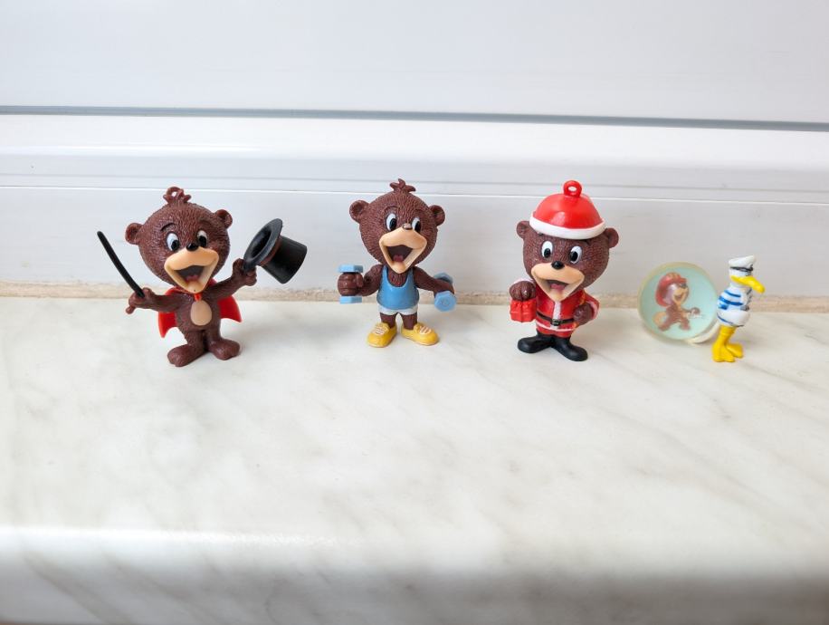 figurica božićni Lino, medvjedić mađioničar i Lino koji vježba.