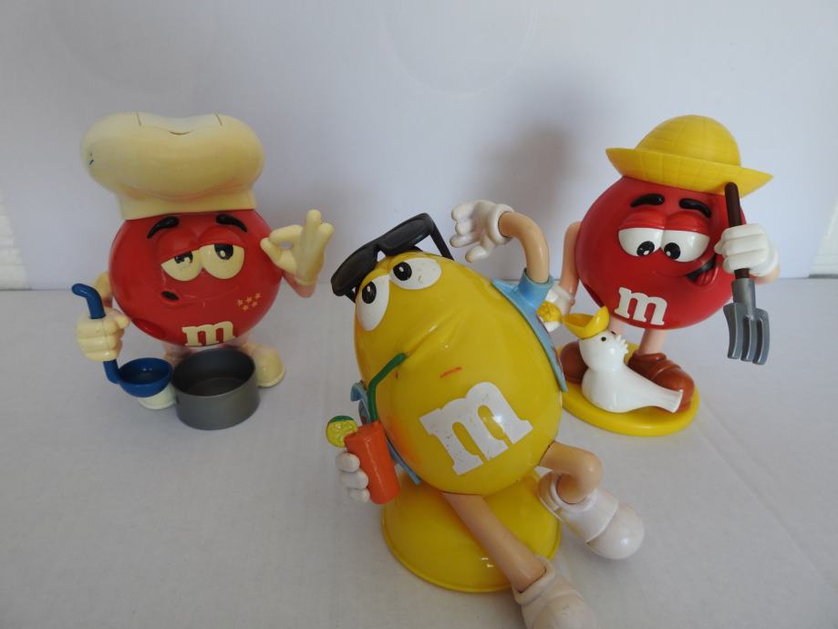 Na prodaju je set od 3 originalne M&M's figurice iz 90-ih i ranih 2000-ih – odličan dodatak za svakog kolekcionara ili kao zanimljiv retro ukras.