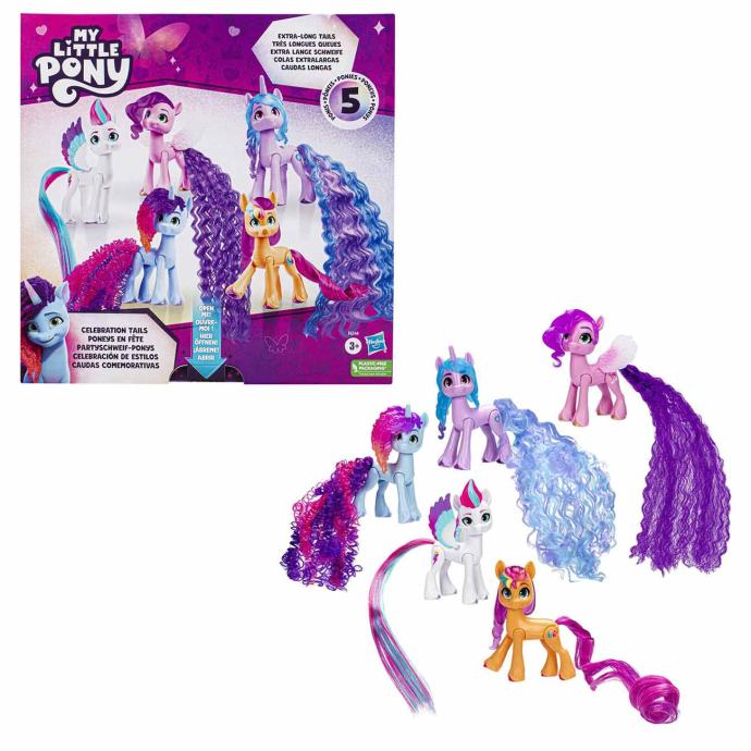 My little pony iz kuće HASBRO: set kolekcije Celebration Tails uključuje 5 figurica - Sunny Starscout, Princess Pipp Petals, Misty Brightdawn, Zipp Storm i Izzy Moonbow.