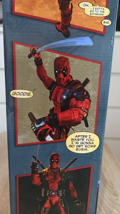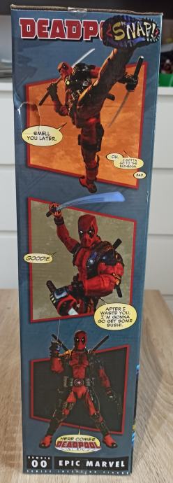 Prodajem figuru NECA Deadpool, Epic Marvel Number 00, u omjeru 1/4. Sve novo, nekorišteno, u originalnom pakiranju i odličnom stanju. Figura i dodatci su izrađeni od tvrde plastike. Sve je vrlo detaljno izrađeno (sa mnoštvom detalja specifinih za lik Deadpoola) te vrhunski obojano. Figura je visoka oko 46 cm. Sadrži mnoštvo dodataka te ima mogućnost artiikulacije u 33 točke tako da se može postaviti u razne položaje. Izgled i stanje se vide na priloženim slikama, a iznimno detaljan opis se nalazi u priloženom videu.