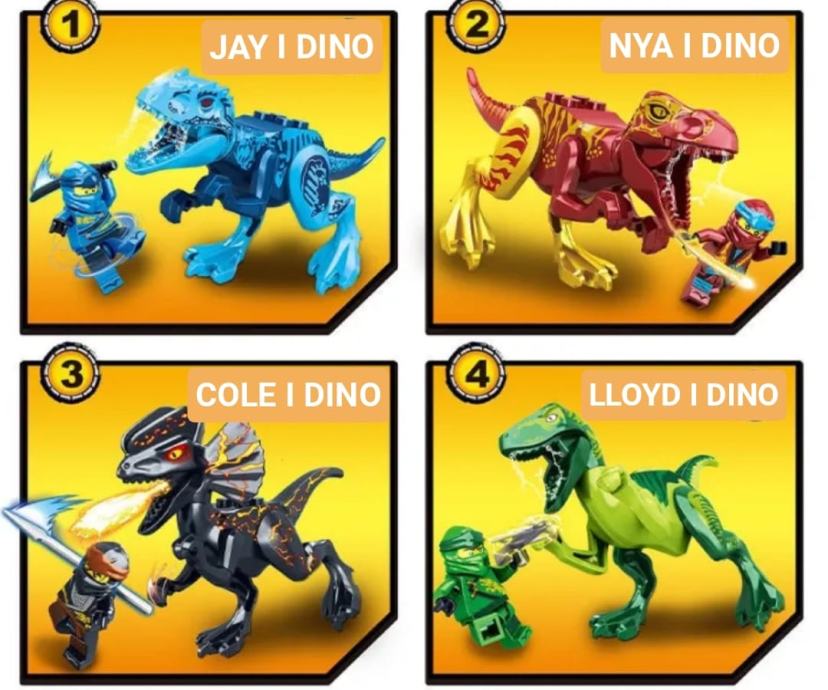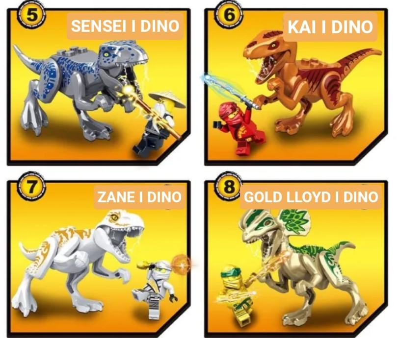 Prikazano koji Ninjago figurica i Dinosaur dolaze zajedno u paketu.