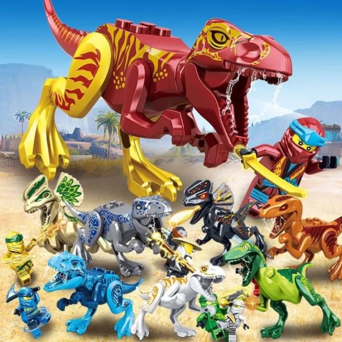 Svaka figurica zapakirana zasebno sa Dinosaurom. Figurica Ninjago standardne veličine a Dinosaur veoma velika figurica 13 x 7 cm.