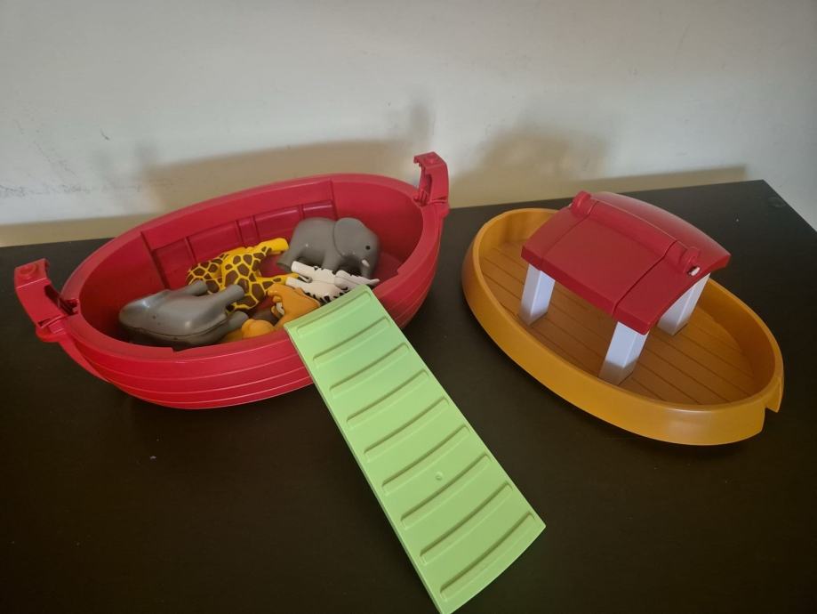 Arka može plutati na vodi. Paluba se može diči tako da se figure mogu smjestiti u utrobu arke i pomoću ručke nositi.