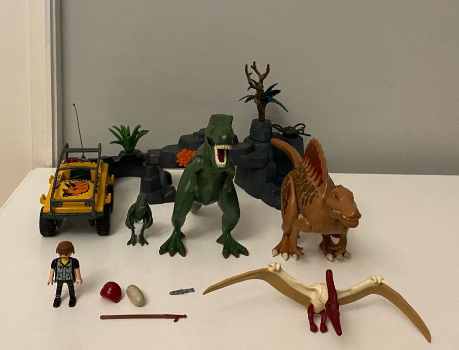 Prodajem playmobil dinosaure sa setom i sa playmobil figurom sa autom. Svi su djelovi čitavi i svi su prisutni.