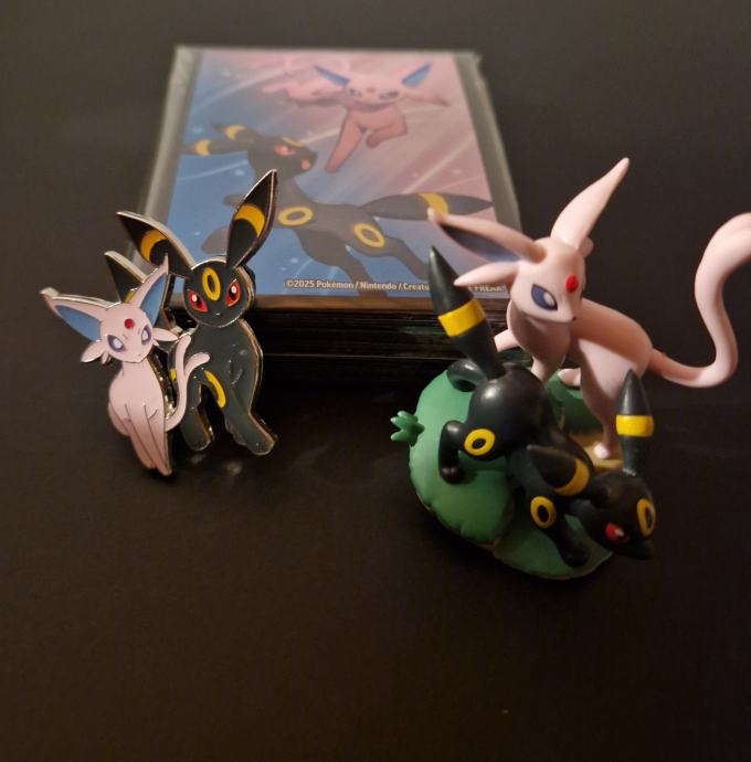 Prodajem nove Pokemon Prismatic Evolution Umbreon & Espeon figuricu, pin i sleevese.