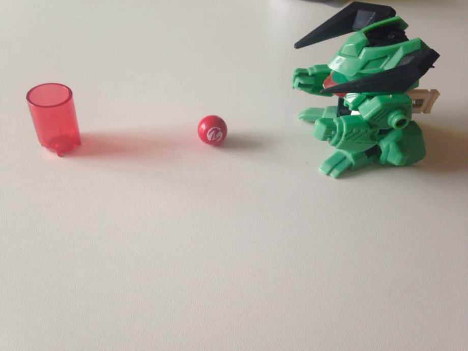 *robotu se u stomak stavi crvena kuglica i gađa crveni čunj