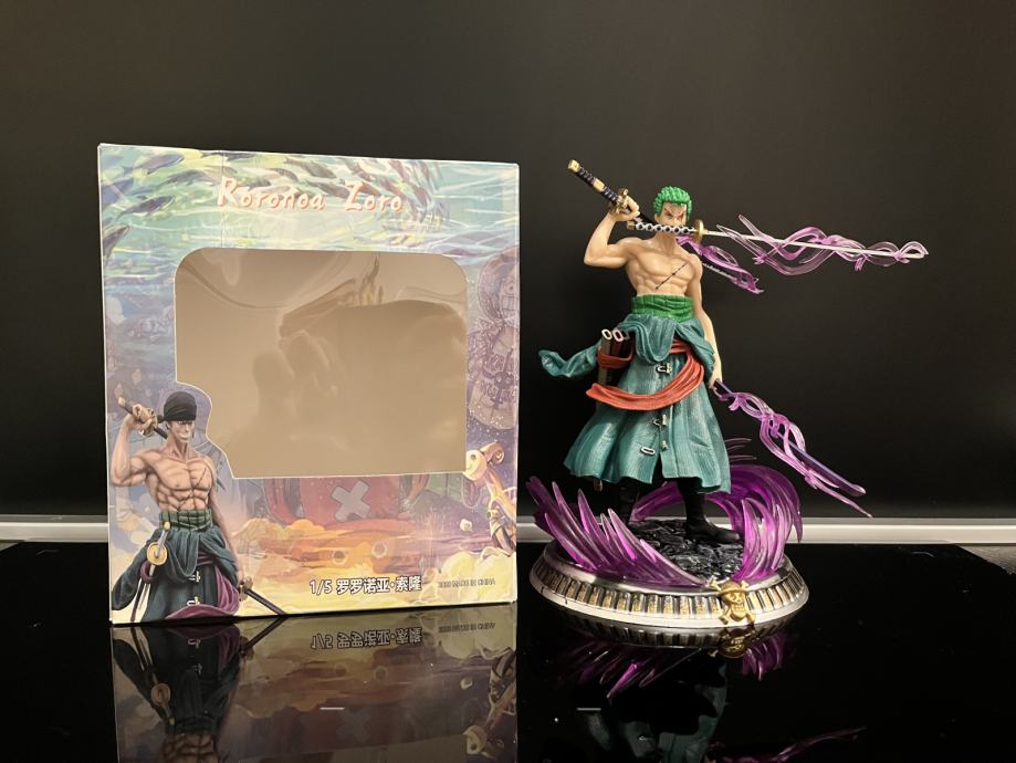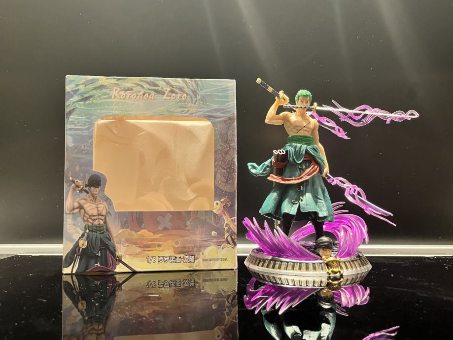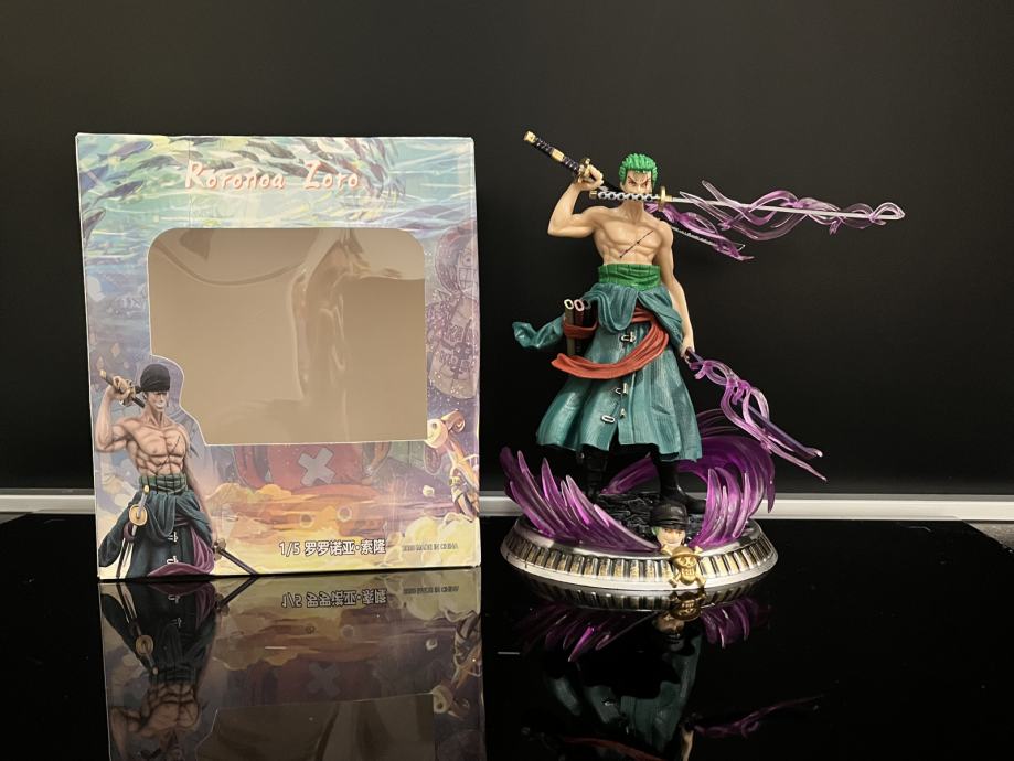 Jednodijelna figura 21 cm Roronoa Zoro dvoglava borbena vještina RORONOA ZOROs tri noža Anime akcijski model ukrasi PVC igračka rođendanski dar