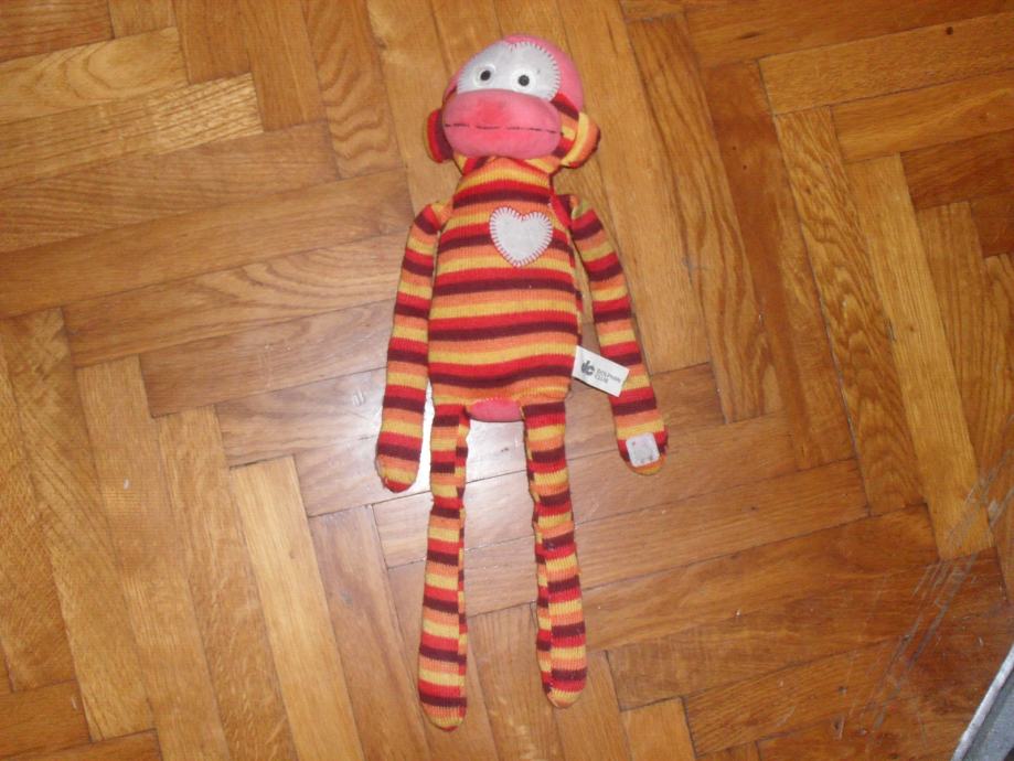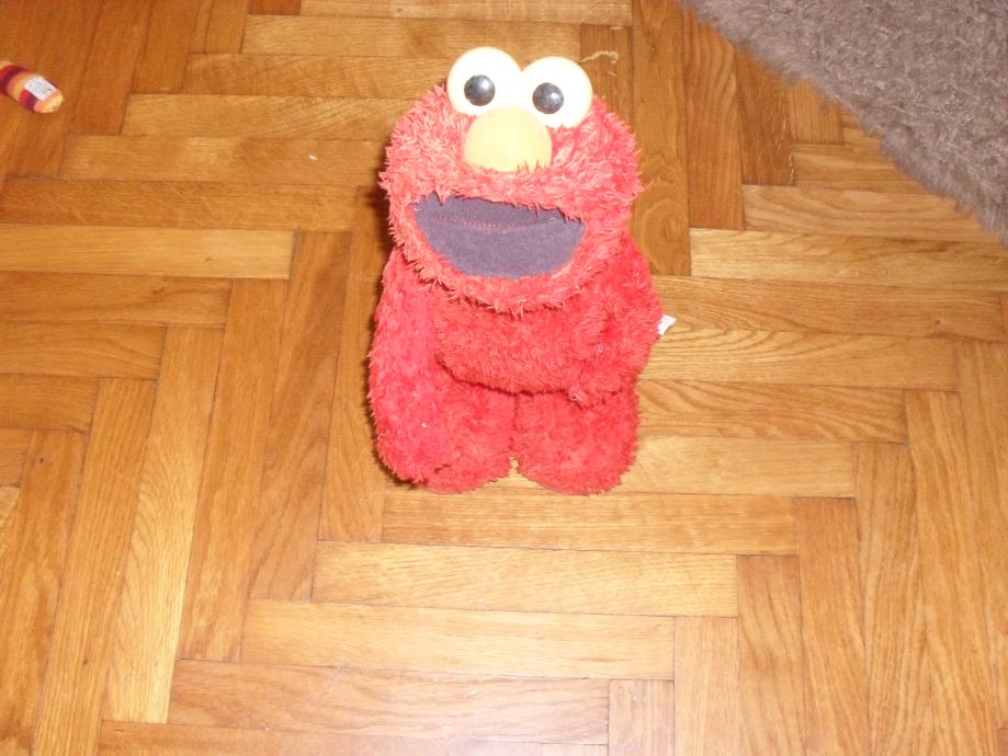 Elmo visok 38 cm, presavija se u kuku pa može sjesti, desna ruka mu se podiže. Cijena 5,00 EURA , MAJMUNČIĆ DUGAČAK 40 CM, ima ugrađen zvučnik sa majmunskim glasanjem, ispravan, elektronika radi, baterija OK = 3 eura, oba 7 eura