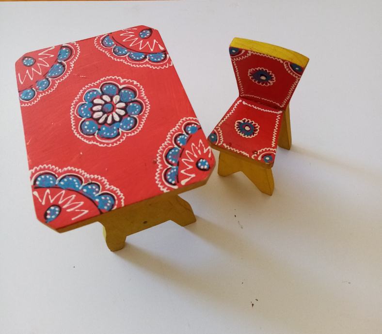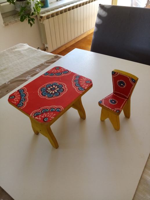 STARA IGRAČKA DRVENI STOL I STOLICA