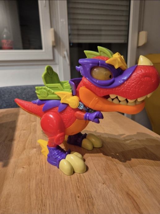 Kao ovo, bez ostecenja, ispusta zvukove i svijetli. Uz dinosaura dolaze i pripadajuce igracke iz seta.
