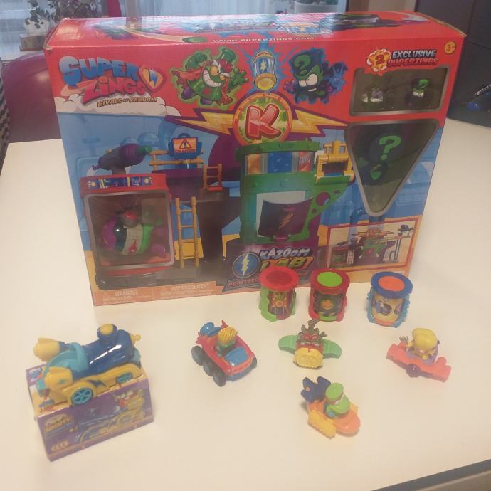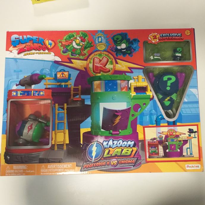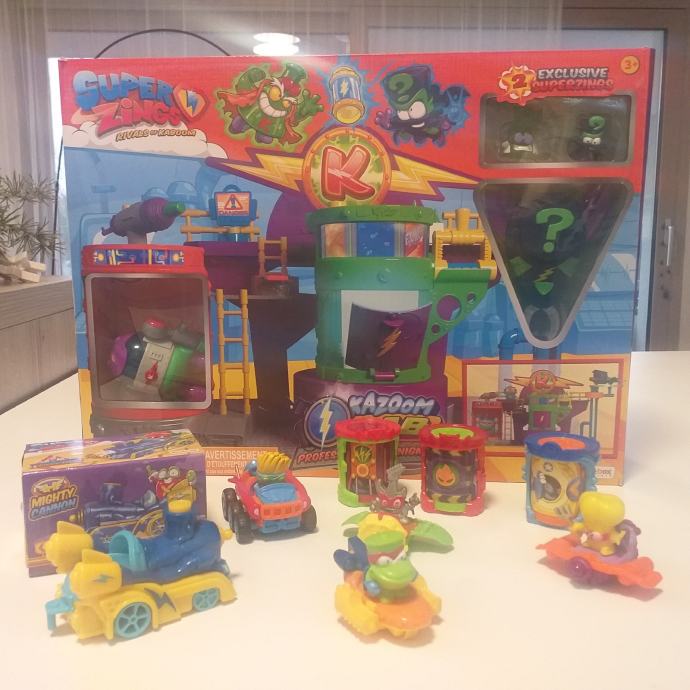 Super Zings set Kazoom lab- Profesor K i Enigma. U originalnom pakiranju + 5 vozila (jedan u originalnoj kutiji) i tri Zings kućice sa dodatnim figuricama uz dva eksluzivna Zingsa. Cijena novog kompleta 350 kn + dodatne igračke i figure. Moja dostava u Zagrebu.