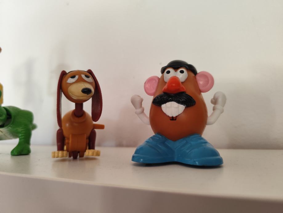 - Mr. Potatoe Head (Gospodin Krumpiroglavi) - cca 8 cm visine, šešir na potezanje kojim se pokreću kotačići, pa samostalno klizi po podu.