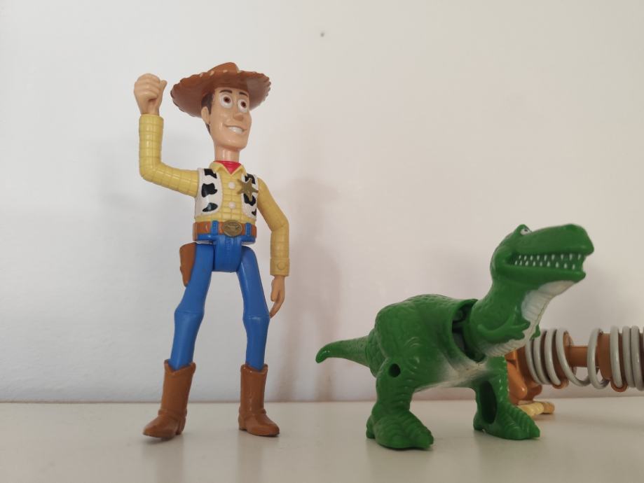 - Sheriff Woody (Šerif Woody) - cca 15 cm visine, pokretne ruke, noge i glava, na leđima ima kotačić kojim vrti desni ručni zglob.