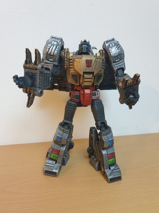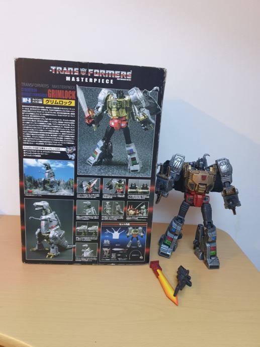 Transformers Masterpiece Grimlock MP8 figura koja se transformira iz robota u T-Rexa. Posebno customizirana i obojana da izgleda šta realističnije. Cjena nije fiksna i slobodno za sva dodatna pitanja pošaljite poruku na waap ili upit preko maila. Šaljem ga sa originalnom kutijom puškon i mačem njegovim te uputama za transformaciju.
