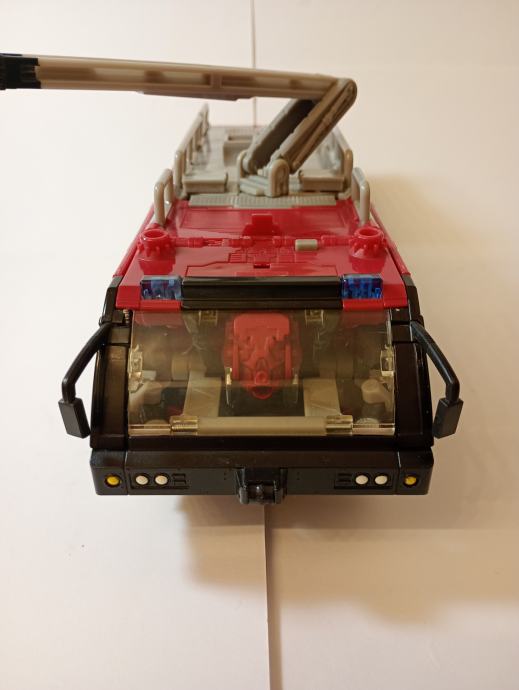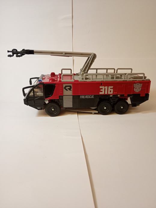 Figura u izvrsnom stanju, bez ikakvih oštećenja, svi zglobovi tvornički čvrsti, kompletna s dvostrukim mačem i transformirajućim štitom. Transformacija iz aerodromskog vatrogasnog kamiona u masivnog robota.