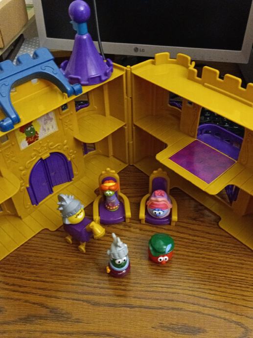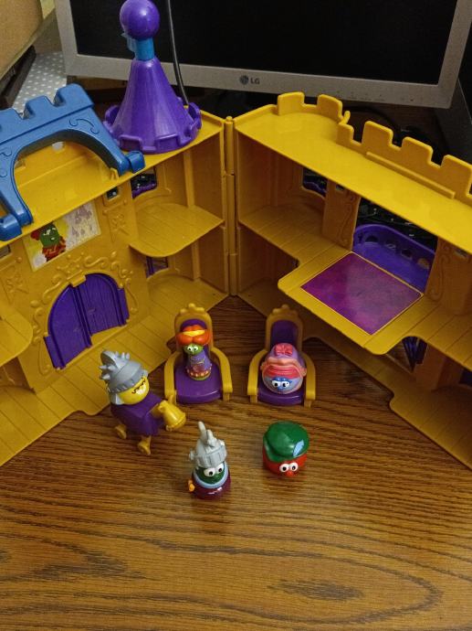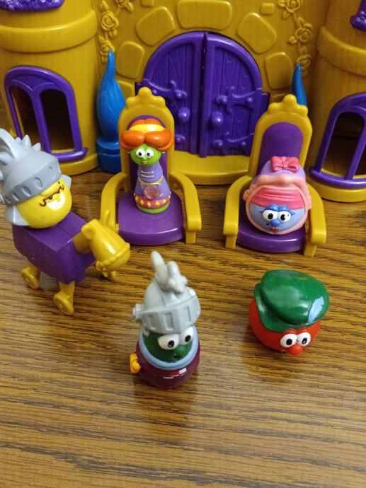 Prodajem Veggietales dvorac sa figurama prema istoimenom crtiću. 6 figura, 2 sjedalice i dvorac za 20€.