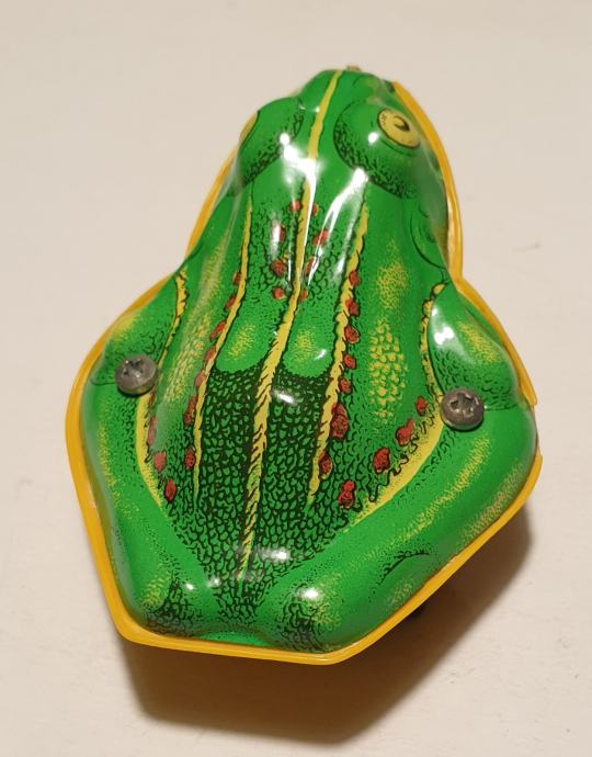 Prodajem dosta rijetku vintage mehaničku igračku za navijanje u obliku žabice u originalnoj kutiji s ključem za navijanje.