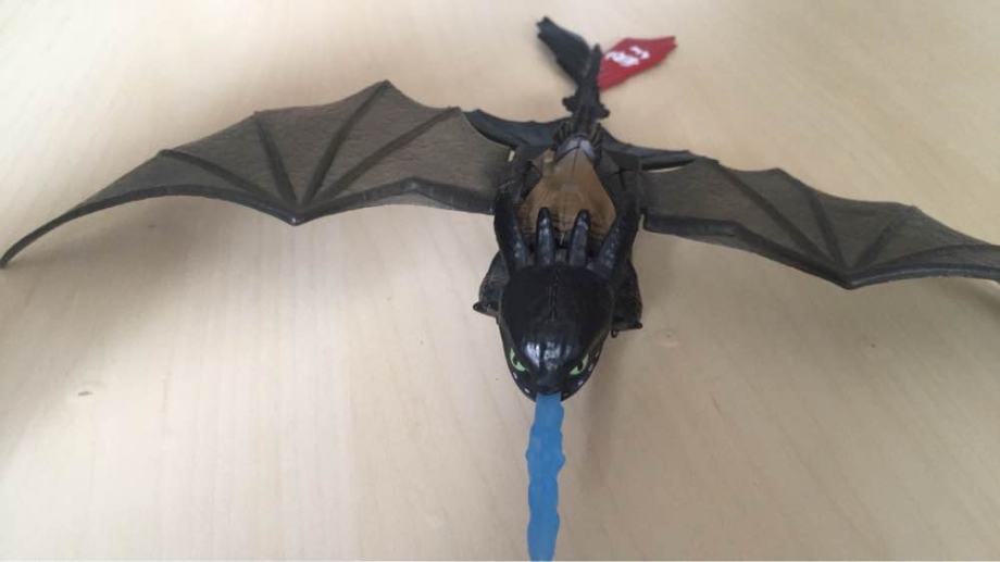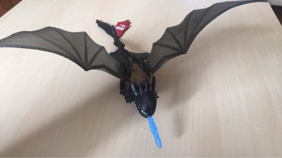 Zmaj Bezubica iz crtića Kako izdresirati zmaja, pomična krila, ispaljivač štapića iz usta, pomične noge
