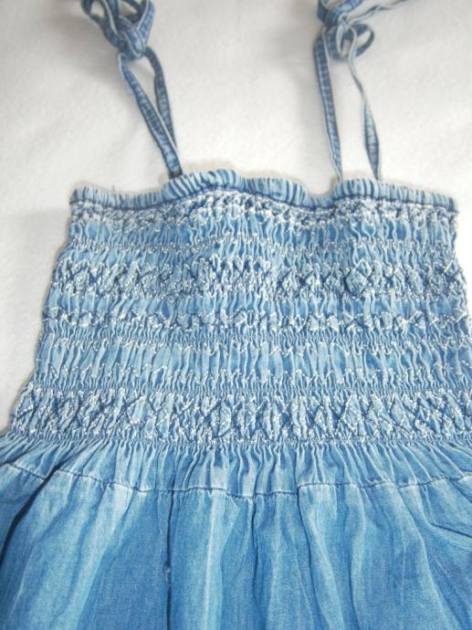 SUPER OČUVANA, MOŽE SE NOSITI KAO HALJINA ILI MAJICA NA BRETELE (DO VEL. 10), OD MEKANOG TRAPERA, RASTEZLJIV I PODESIV GORNJI DIO, LIJEPA