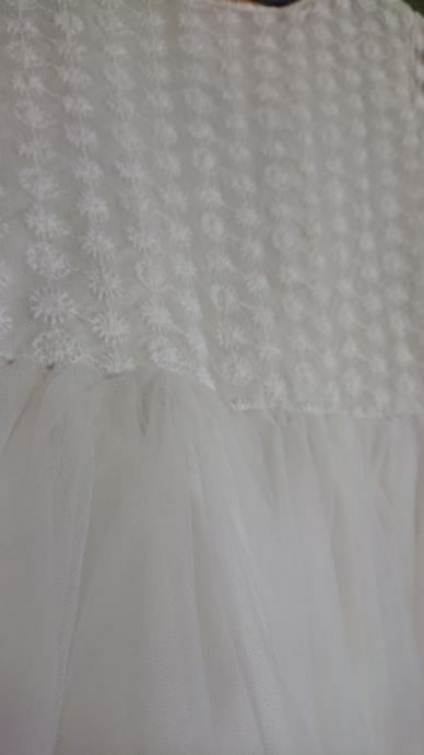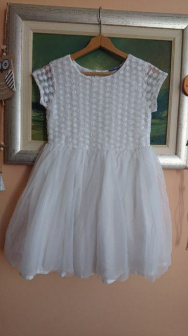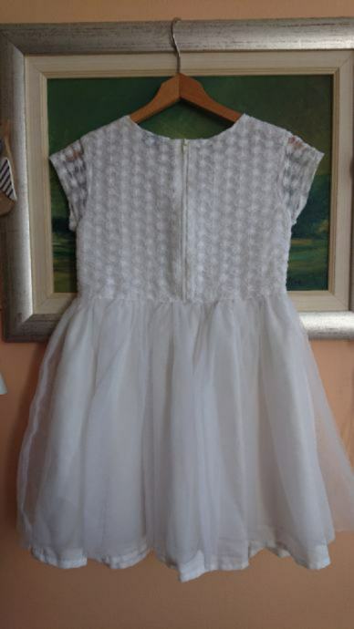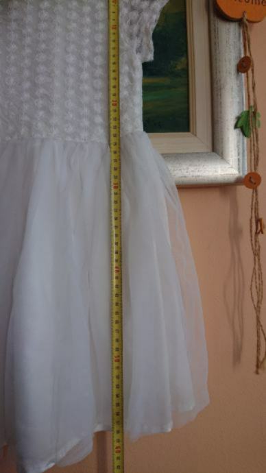 Bijela svečana haljina br. 110 za curice, dužina cca 57-58cm, sa puno tila, kopčanje otraga na cif.