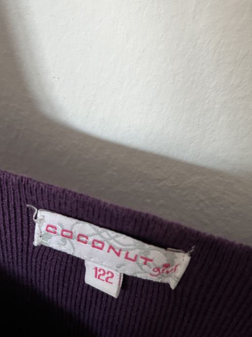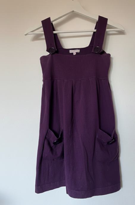 Očuvana. Boja je tamno ljubičasta. Može se nositi na duge rukave i štrampice ili samostalno.