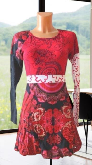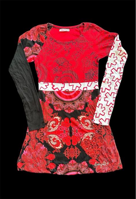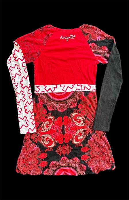 DESIGUAL preslatka pamučna haljina vel.13/14 god, vel.158, može i kao XXS i XS, novo, nenošeno. Prelijepa haljina napravljena u kombinaciji raznih boja i dezena, uža u gornjem dijelu, od struka na niže se širi prema dolje, predivna uživo.