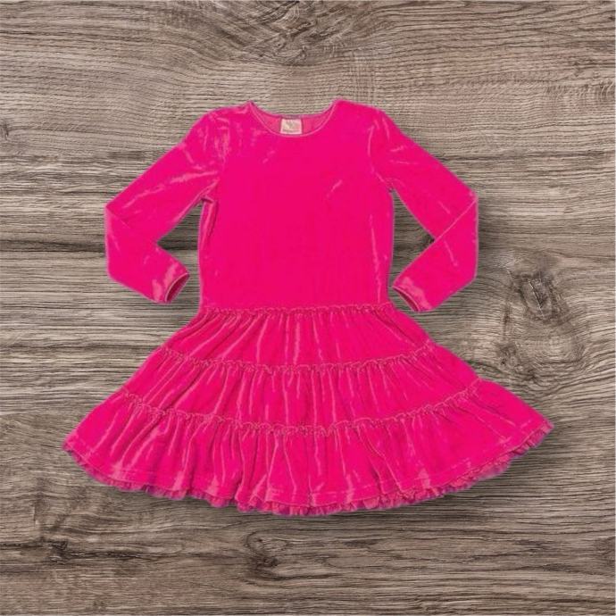 HANNA ANDERSSON predivna tamno roza pamučna pliš haljina vel.140 (realno 140/146), nova, samo oprana. Predivna haljinica uža u gornjem dijelu, od struka se širi u volanima prema dolje i širi se u velik krug koji završava s čipkom. Prelijepa uživo, skupo plaćena. Materijal je predivan puniji pamučni pliš.
