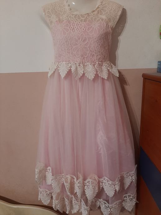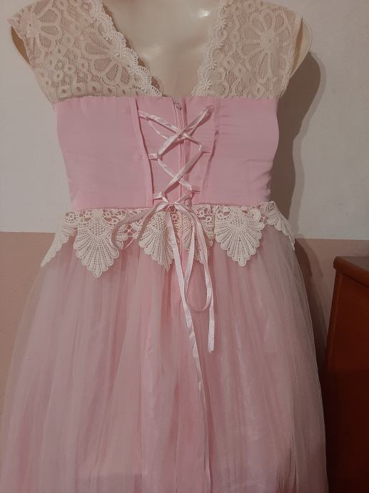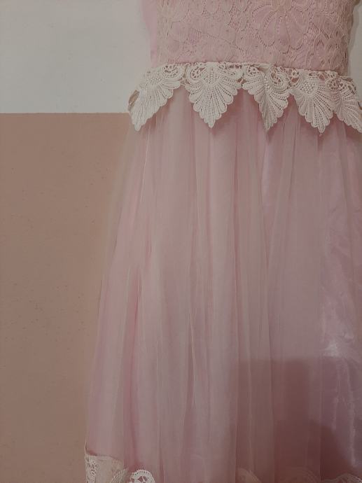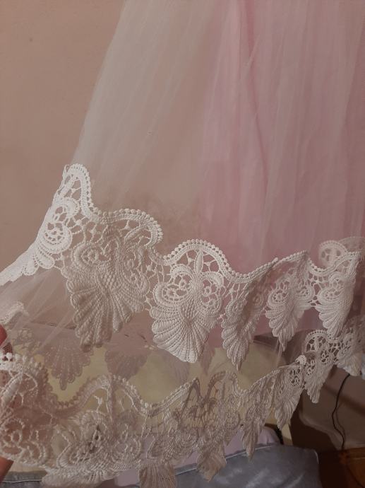 Roza svečana haljina jednom obućena. Vel. 150, ali može i na vel. 34.