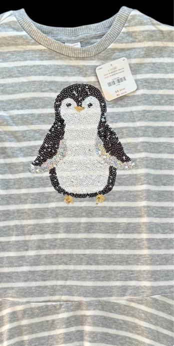 Gymboree pamučna haljina pingvin vel 10-12 god, 140/146/152, novo s etiketom. Pingvin je napravljen od svjetlucavih ringića.