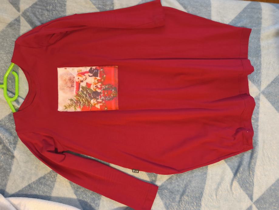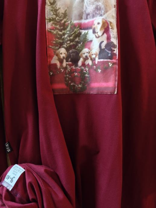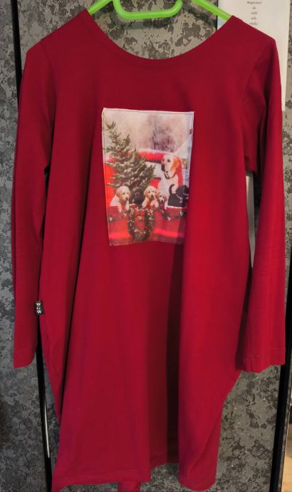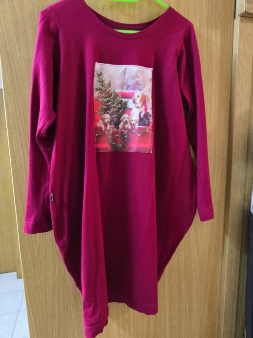 Balončica par put nošena, očuvana, kao nova, veličina 9/10 Bordo boja, praznični, božićni motiv, dužina 72 cm, prsa 40 ali se još rasteže jer je ugodnog, rastezljivog materijala. Boja je kao na prvoj slici, ostalo je kriva nijansa radi svijetla.