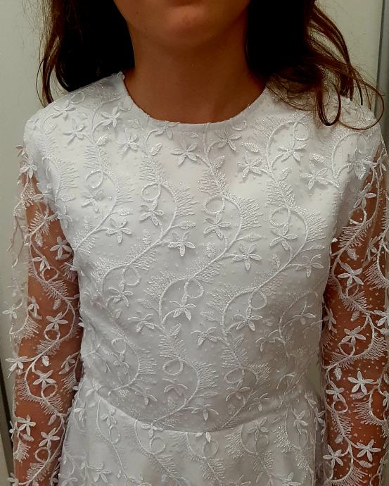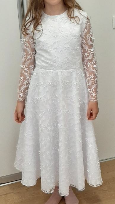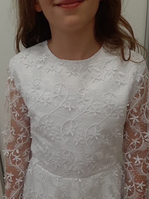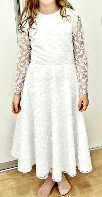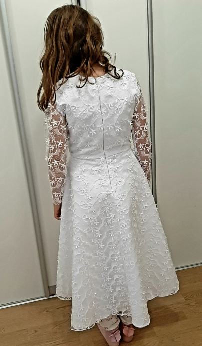 Nova haljina, šivana za prvu pričest. Jednom nošena i kemijski čišćena. Šivana u salonu. Plaćena 1100,00 kn