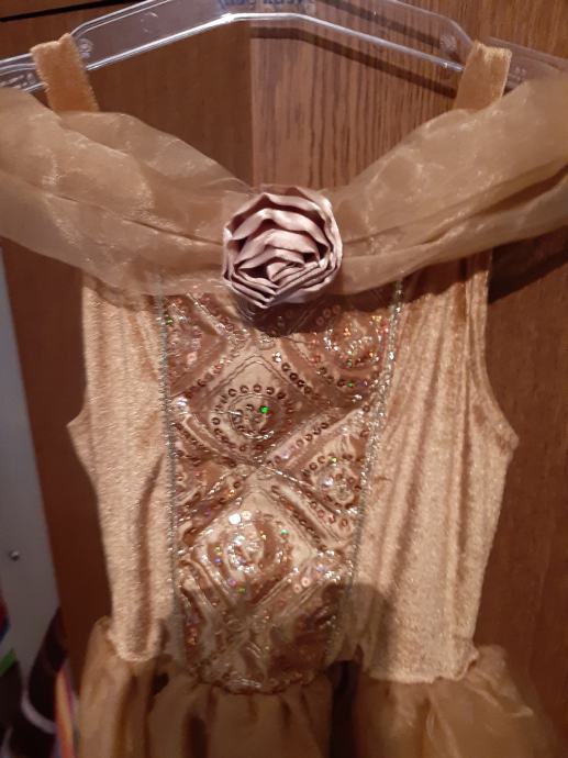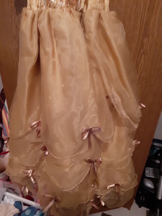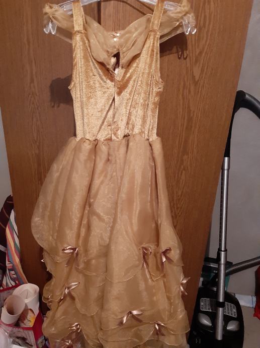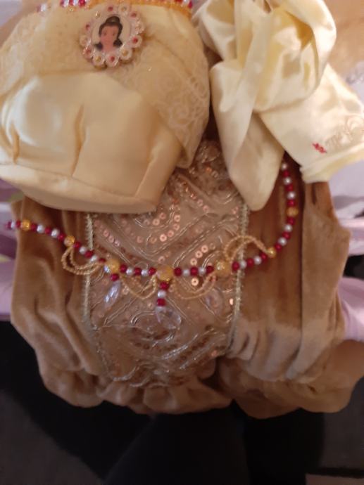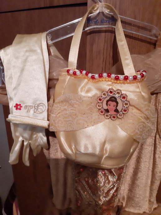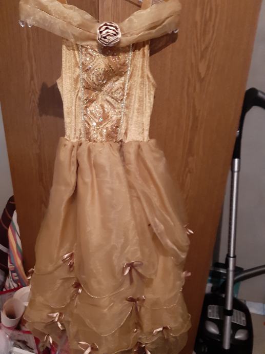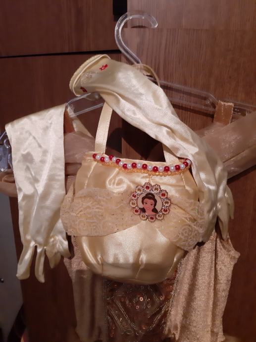 Haljina za maskenbal,princeza,raskošna sa dodacima ; torbica,rukavice i ogrlica. U jako dobrom stanju. Za dob od 10 godina po meni od 8-10 ovisi o visini djeteta.Mogučnost slanja poštom ili tiskom.