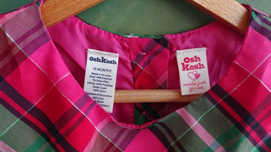 OshKosh prekrasna božićna svečana haljina za curice br. 86, NOVO, nenošena, samo oprana, nema etiketu, dužina cca 48cm, predivno stoji, sa svilenkastom podstavom i dva sloja tila pri dnu tako da bude 'pufasta', jako lijepa uživo, sa svilenkastim svjetlucavim nitima, nažalost ostala nenošena jer se curka razbolila i nismo išli na prigodu za koju je kupljena, plaćena duplo.