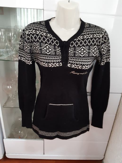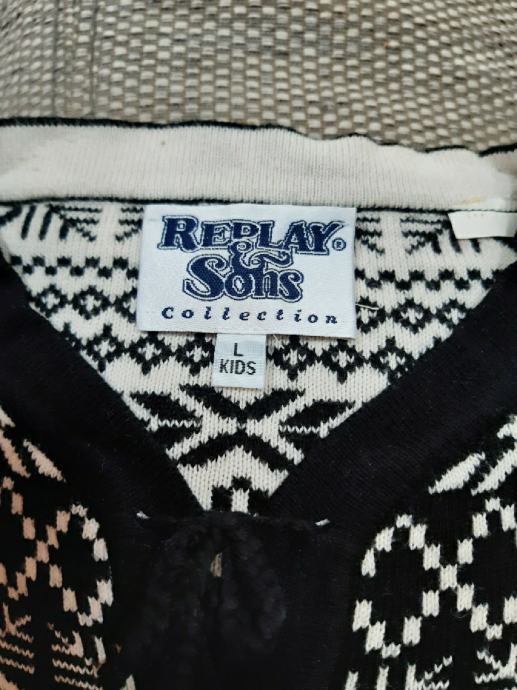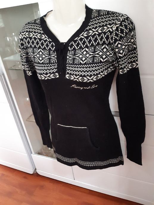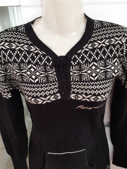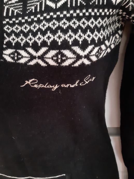 REPLAY & SONS crna vunena haljina s bijelim detaljima, širina prsa, prednja strana: 38 cm, duzina: 70 cm, duzina rukava: 64 cm.