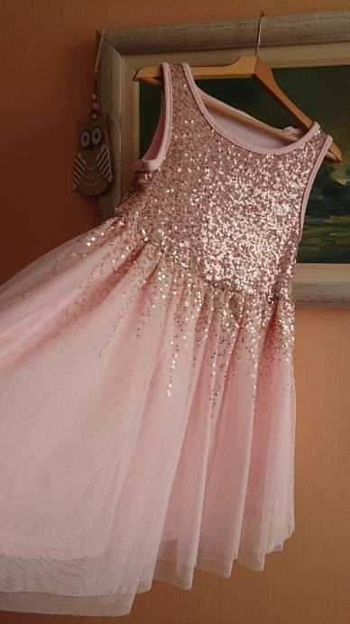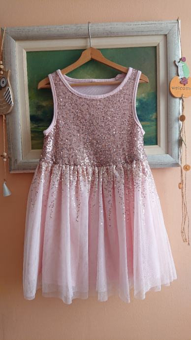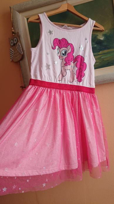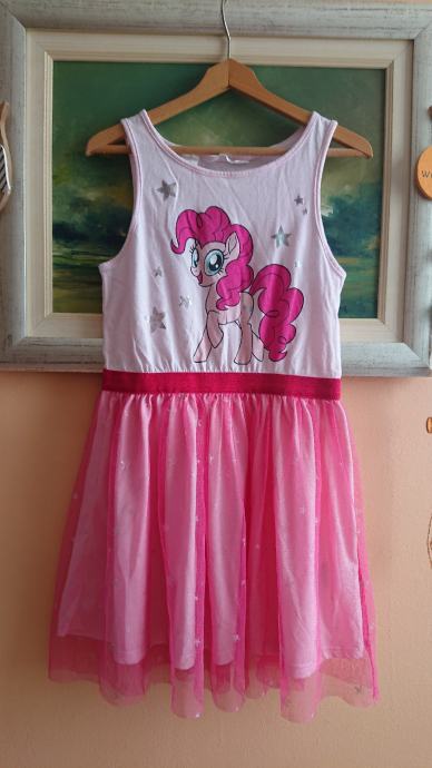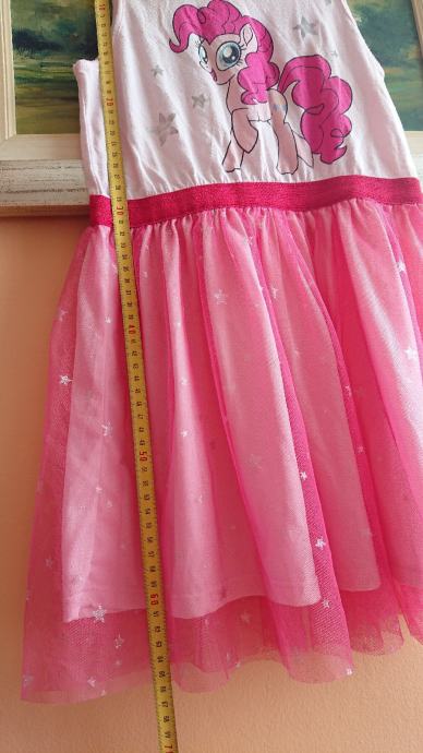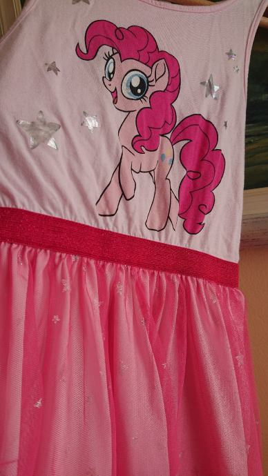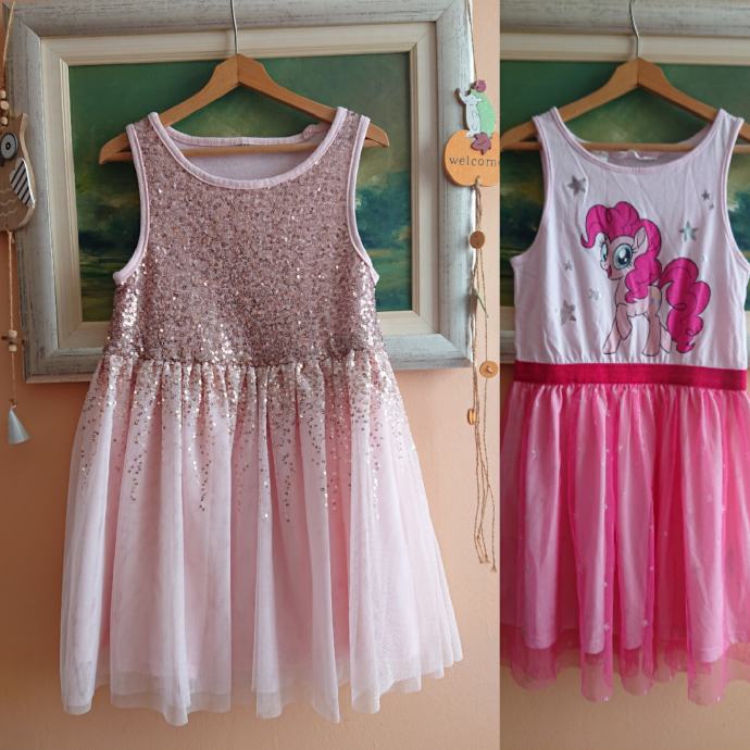 Svečana haljina 122 128 za djevojčice, lot od dvije predivne haljinice, jedna svijetlo roza sa puno šljokica i tilom, druga roza sa My little pony motivima, svjetlucavim detaljima i tilom.
