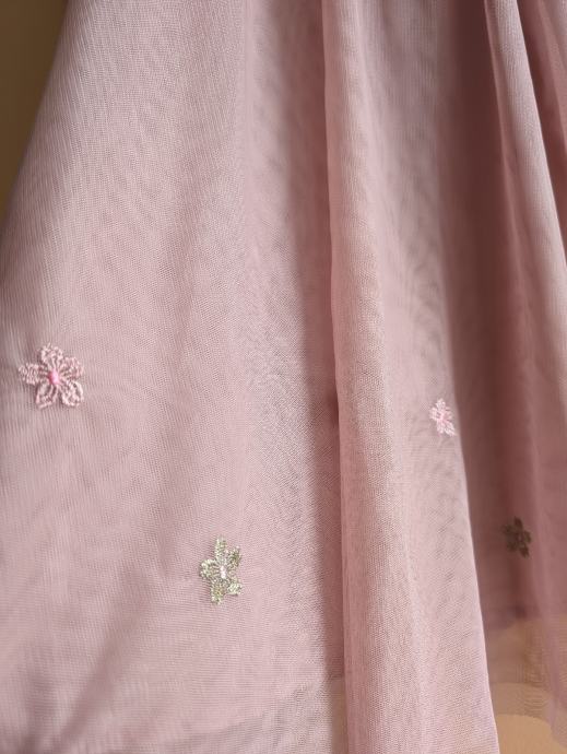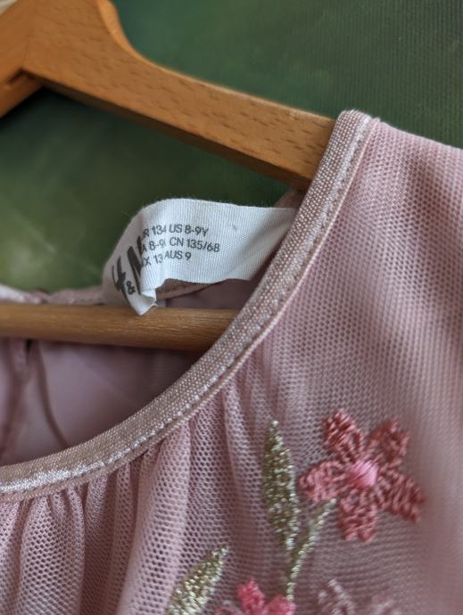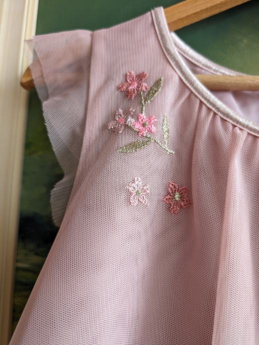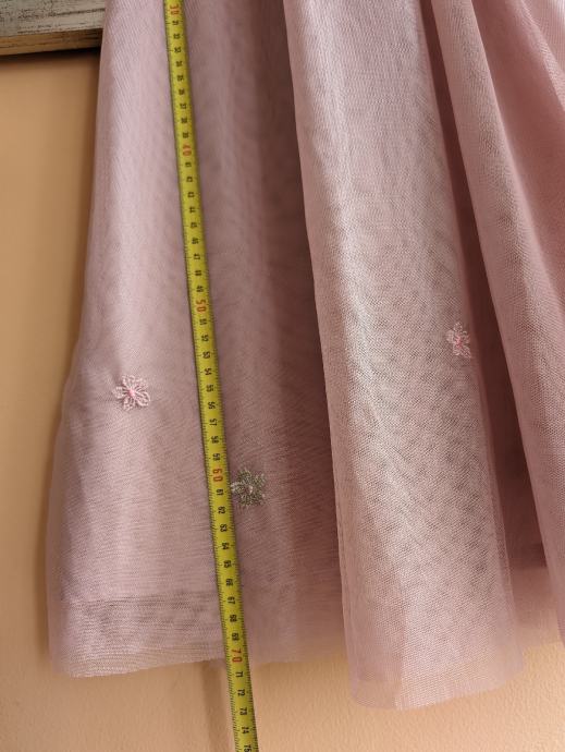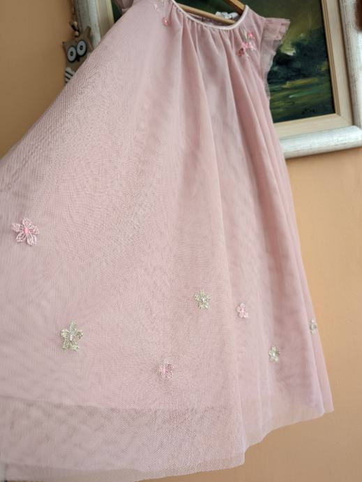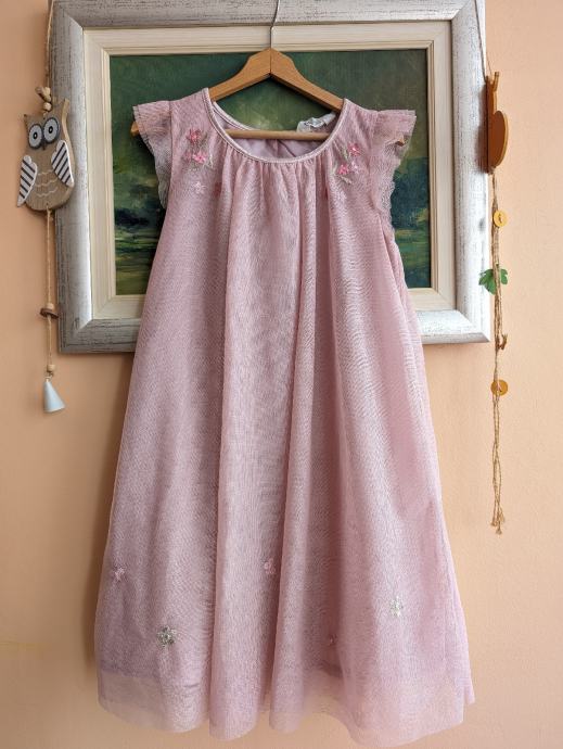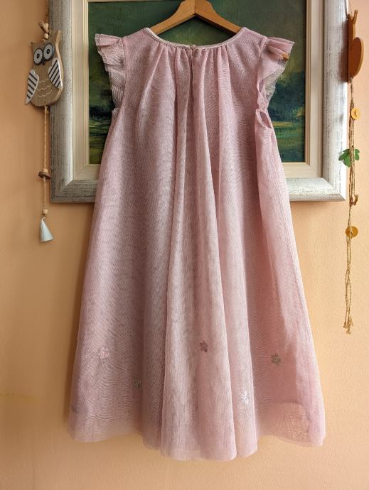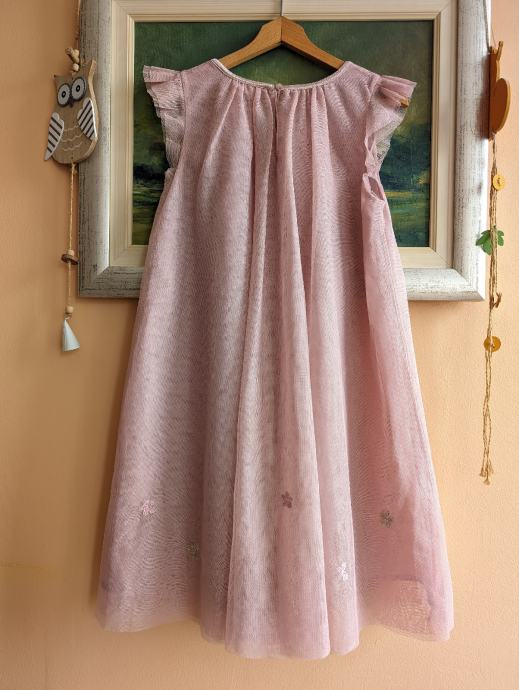 Svečana haljina za djevojčice br. 134, dužina je uslikana, prljavo roze, s motivom malih cvjetića, jako slatko stoji, za posebne prilike ili ljetne šetnje.