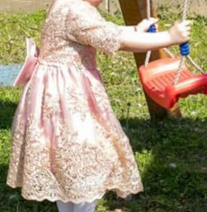 Svecana haljina za djevojčice, prljavoroza boja sa zlatnom. Velicina 98-104. Jednom nosena.