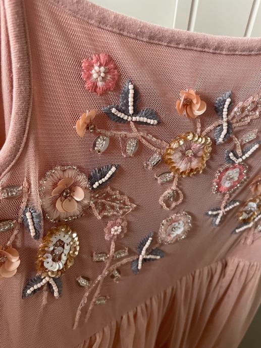 Predivna haljinica sa slojevitim tilom i nasivenim ukrasima na prednjici. Pazena i mazena.
