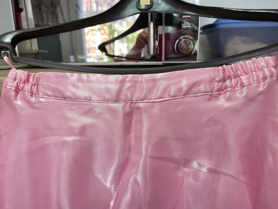 Donji dio tj. suknja ide u A kroj i super je kad se vrti u krug, ima podstavu, gornji dio je svila koja se presijava, preko toga je materijal proziran( ne znam kako se zove) i od tog materijala je i šal , mjere haljine: struk 31cm s tim da ima guma sa svake strane struka i ima otvarač za lakše oblačenje. Dužina haljine je 84cm, a širina na dnu je 133cm.