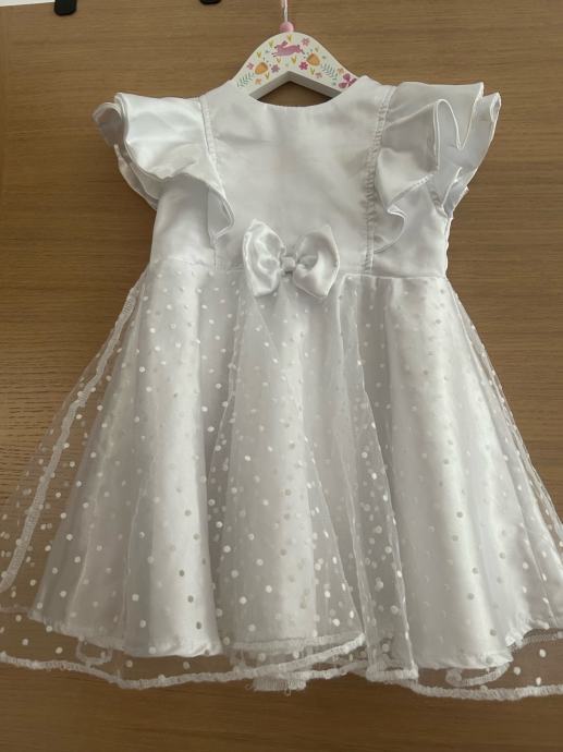 Svecana krsna haljinica kupljena u ducanu Rosea i nosena jednom na 2 h. Bez ostecenja i mrlja. Velicina 74 (6-9 mj). Cijena je fiksna.