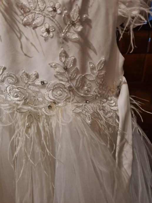 Dobra kvalitetna sv, haljina bjela za 8god i druga šljokicava br 140 ,bjela je jednom nosena ova druga nova.