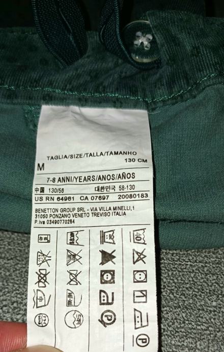 1 x United colors of Benetton dječje hlače za djevojčice veličina 7-8 god 130 (m) skinny stretch, vrlo malo nošene, kupljene u IT, prvi vlasnik, neoštećene, odlično stanje, čiste, postojana boja, zelena. Osobno preuzimanje Novi Zagreb ili strogi centar grada Zagreba; slanje Tisak paket/Box now po primljenoj uplati za artikl i poštarinu. Ne mijenjam za drugo. Kupovina po principu viđeno kupljeno. Dostupno dokle god na oglasu. Za dodatne informacije molim nazvati. Pogledajte i moje druge oglase. Hvala.