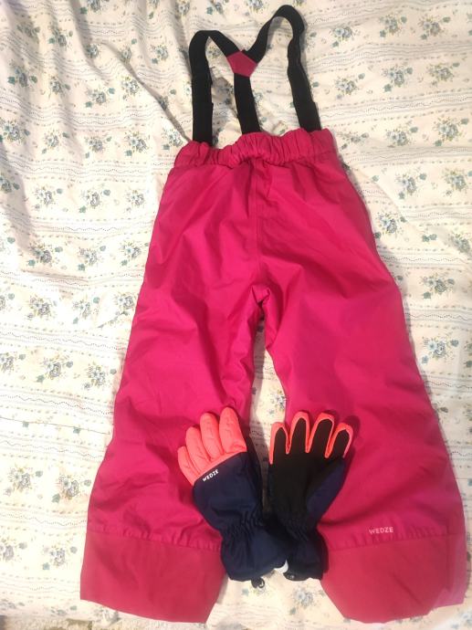 Boje ciklama zimske treger hlače za snijeg. Nošene jednom, kao nove. Vel. 114. Dječje rukavice na poklon.