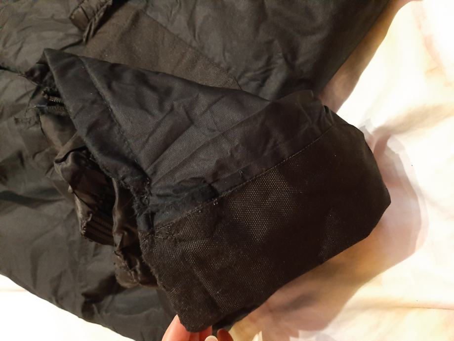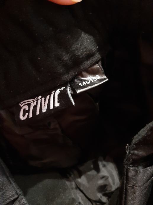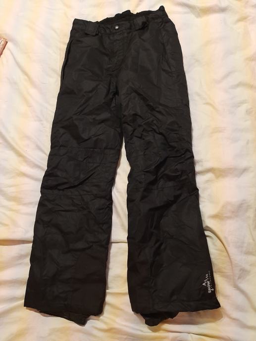 Crne dječje ski hlače. Nepropusne. Nošene jednu sezonu. Vel. 146-152. Dužina od vrha pasice do dolje 98cm, širina pasice 36cm. Ima oštećenje na lijevoj nogavici na kraju. Poslikano na zadnjoj fotografiji.