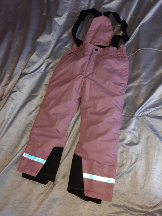 Jednom obućene, kao nove dječje ski treger hlače. Nepropusne, tople i kvalitete. Vel. 110-116. Dužina od vrha pasice do dolje 71cm, dužina međunožja 48cm.