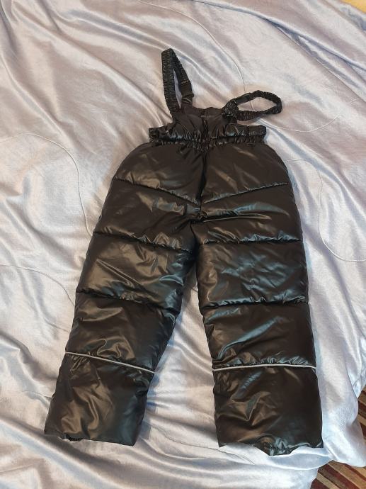 Crne tople ski treger hlače. Nošene kratko vel. 110. Dužina od početka pasice (pazuh) do dolje 70cm, dužina međunožja 45cm.