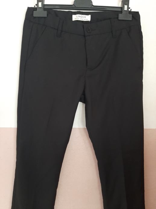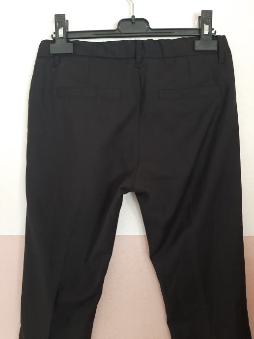 Crne dječje svečane hlače. Regulacija u struku, uži model. Dužina od vrha pasice do dolje 90cm, dužina međunožja 70cm. Jednom obućene.