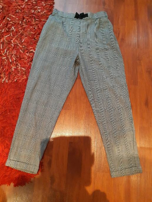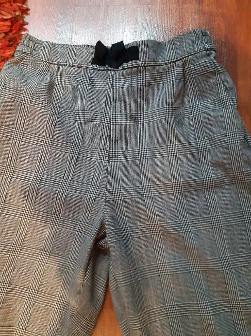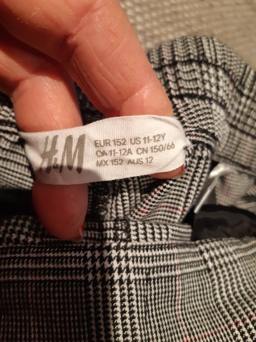 H & M pepita karirane hlače, 146 vel. Širina struka, prednja strana: 32 cm, bokova: 45 cm, dužina nogavice: 86 cm, dubina prednjice: 28 cm.