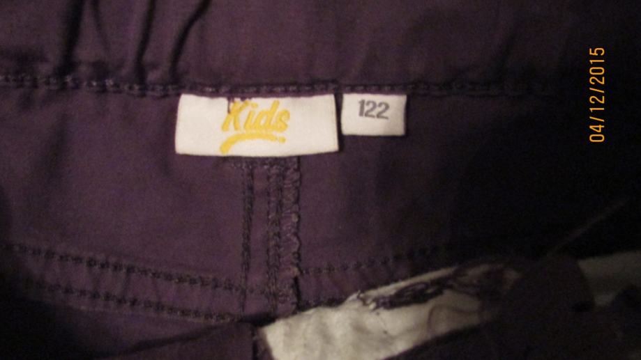 Prodajem hlače za djevojčice. Boja tamno ljubičasta. Hlače su nošene kratko i u izvrsnom su stanju. U struku ima mogućnost podešavanja. Dužina hlača je 72 cm. Veličina 122.